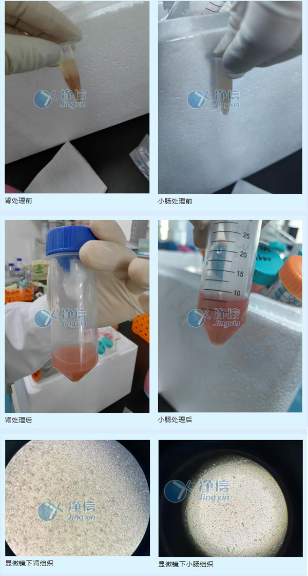 1、準備50ml的消化管,小腸和腎組織剪碎成5mm左右小塊,再用PBS清洗組織碎片,再離心去掉清洗液。