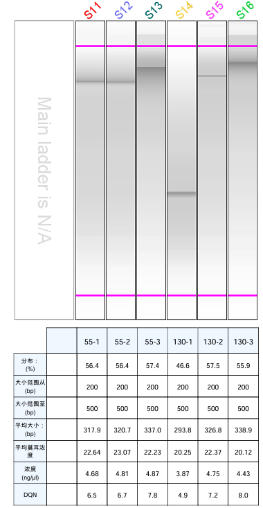 從上圖可看出:10分鐘的效果最佳,大部分在300-500 bp之間