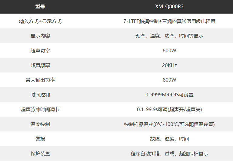 產品簡介:非接觸超聲波破碎機XM-Q800R3由可編輯的數字系統控制,可精確設定振幅、頻率、時間、溫度及溫度報警功能,是一款具備高重復性實驗結果的產品,聚能式剪切無需旋轉樣品支架,就能充分快速的剪切樣品,保證樣品處理的均一性。