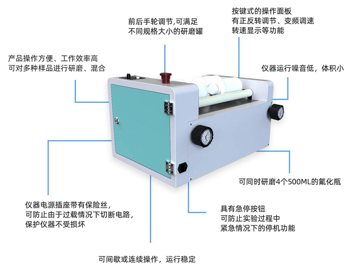 可同時研磨4個500ML的氟化瓶;